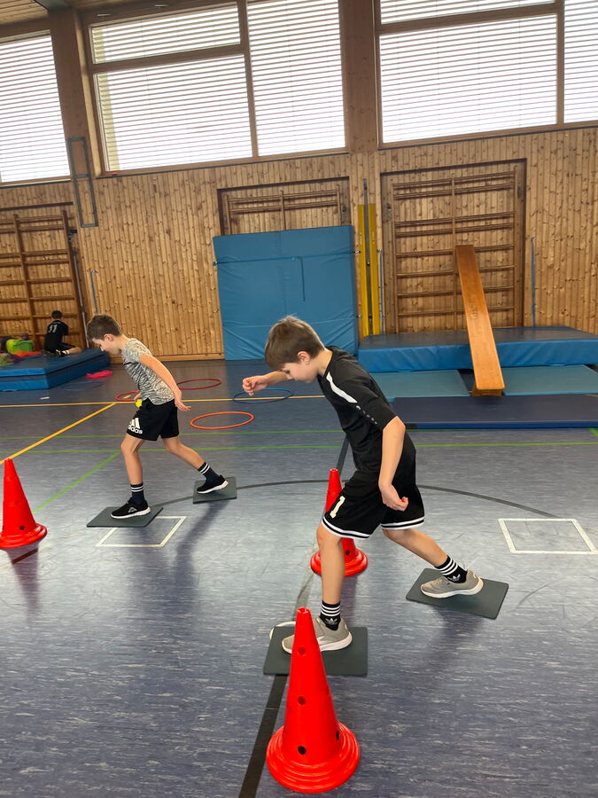 Auch vor den Faschingsferien bauten die Sportlehrkräfte wieder eine Bewegungslandschaft in der Turnhalle auf. Jede Klasse konnte sich austoben und die Stationen genießen.