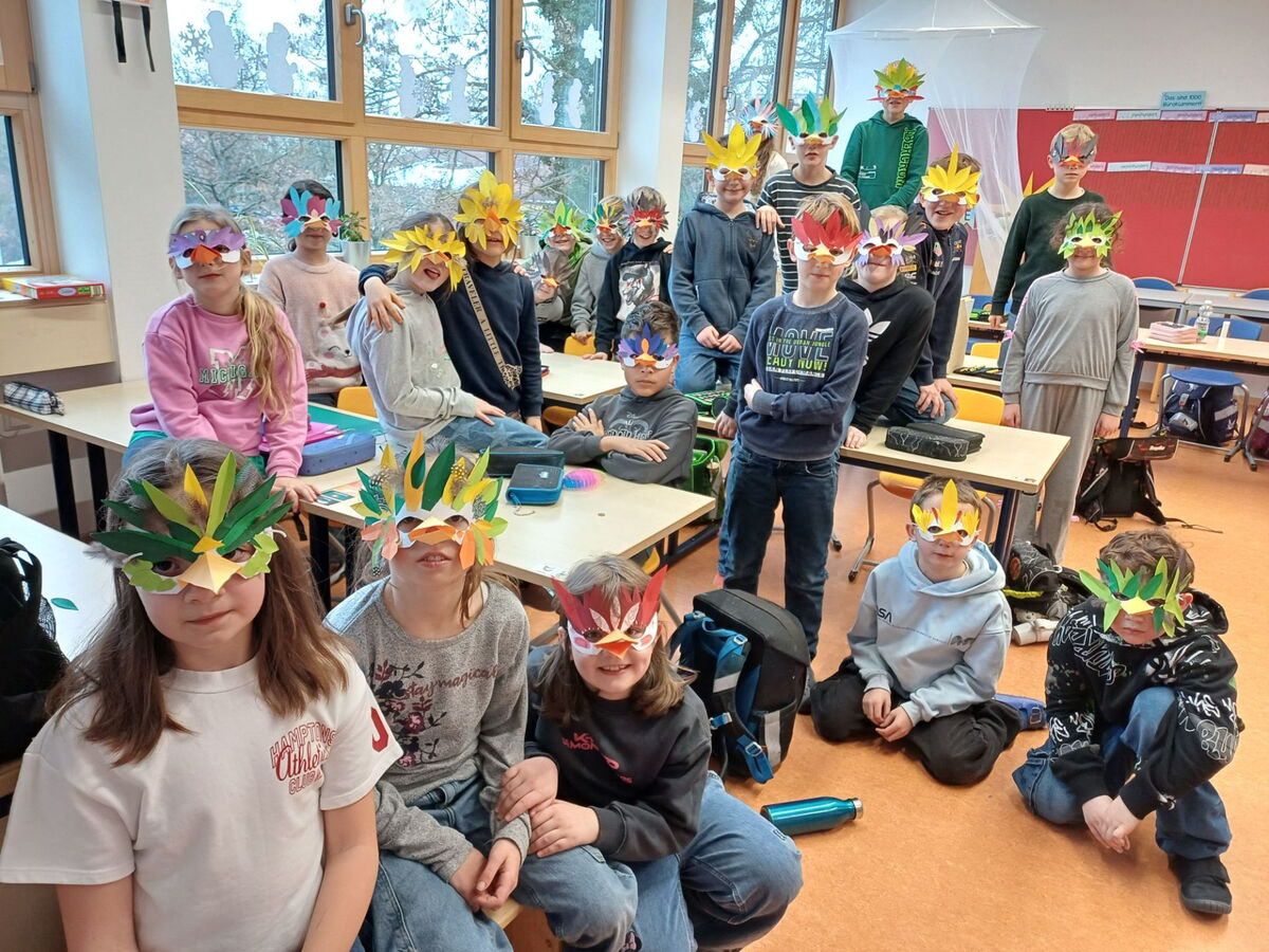Frau Brunner hat mit den Kindern der Klasse 3c tolle Faschingsmasken gebastelt.