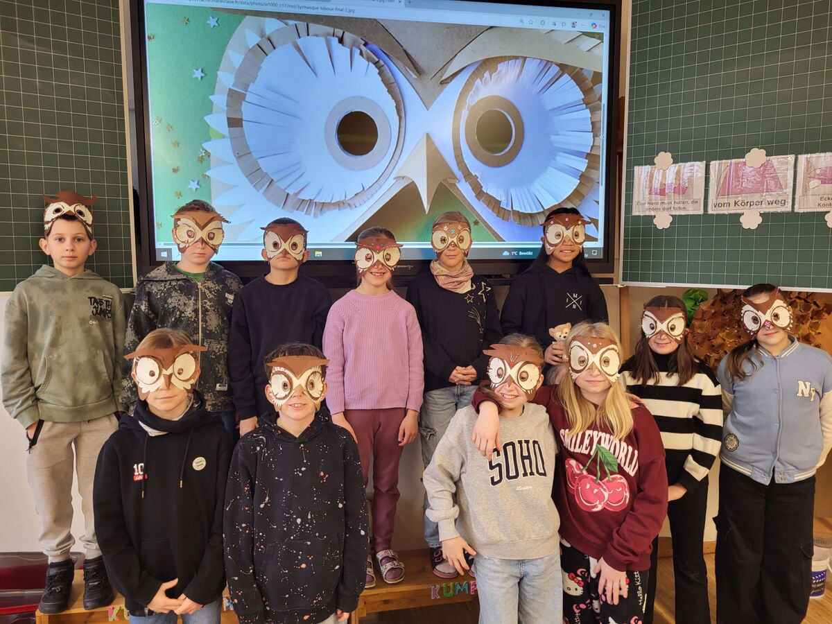Frau Markytan gestaltete mit den Viertklässlern der Klasse 4b wunderschöne Faschingsmasken.