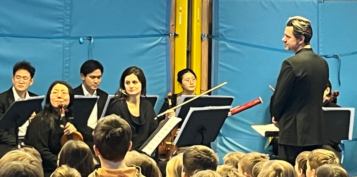 Am letzten Schultag vor den Weihnachtsferien zeigte die Neue Philharmonie das Stück "Der Nussknacker" in der Turnhalle. Nachdem alle Instrumente vorgestellt wurden, lauschten die Kinder gespannt der Geschichte vom Nussknacker und genossen die tolle Musik.