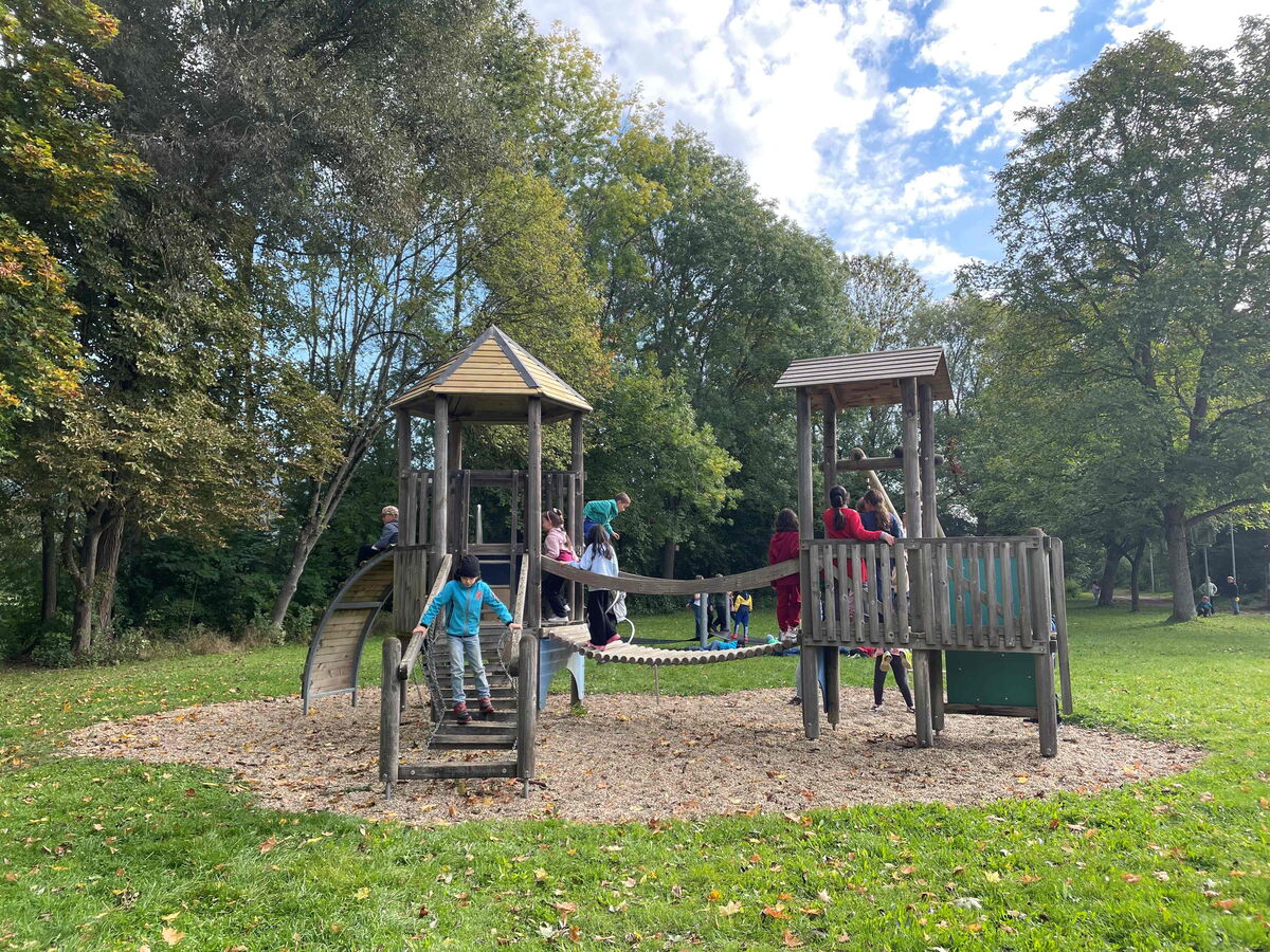 Die dritten Klassen gingen am Wandertag zum Spielplatz nach Sarching. Dort konnten sich die Kinder an und mit verschiedenen Spielgeräten austoben.